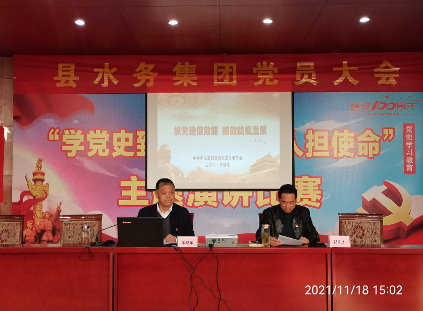 为进一步提升集团公司党建工作水平,全面加强机关效能建设工作,2021年11月18日下午,县水务集团在六楼会议室组织开展专题党课,邀请县直机关工委朱晓东书记做题为《抓党建促效能·抓效能促发展》专题党课,集团公司全体党员干部群众一起聆听了党课。