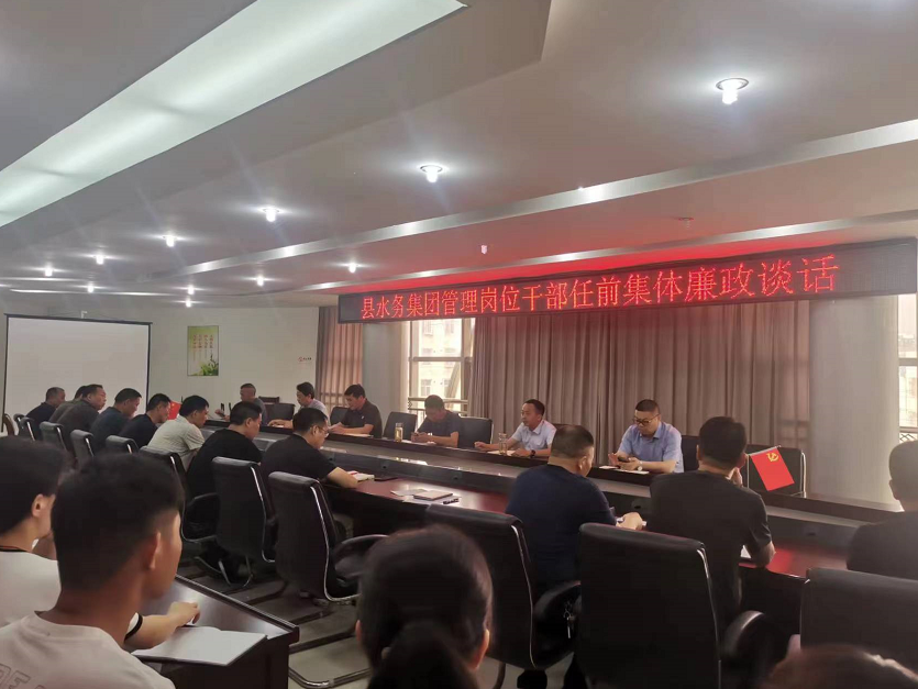 5月27日上午,县水务集团组织对新任管理岗位干部进行任前集体廉政谈话,集团公司党委领导班子成员、各部门及分公司负责人、新任管理岗位干部等参加。