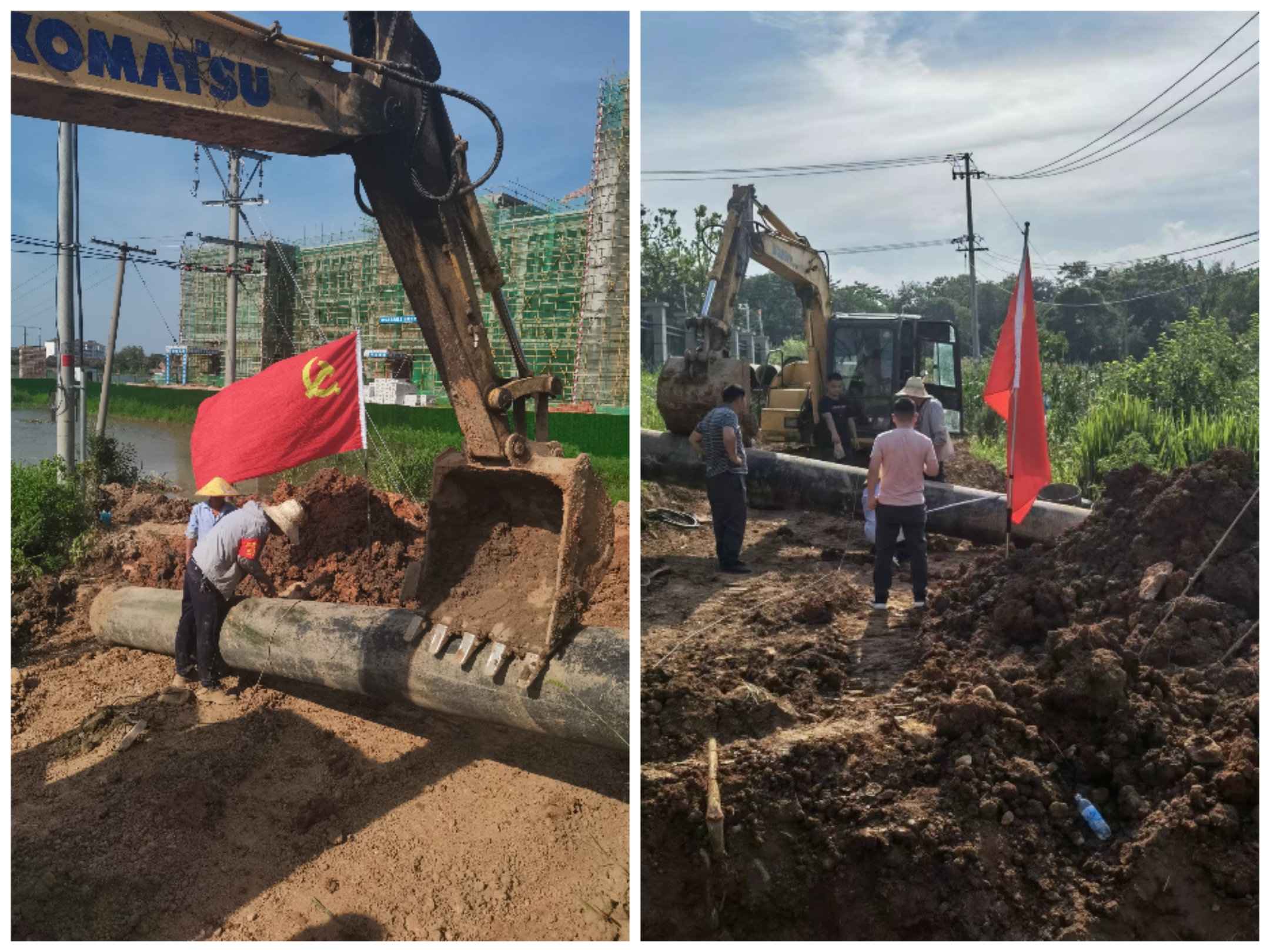 7月12日下午,县水务集团组织骨干党员在龙桥镇安置房项目安装自来水,参与施工的党员克服高温酷暑天气,加班加点施工,确保该安置房项目按期通水。今年来,县水务集团结合“红心向党•水润庐江”党建品牌创建工作,充分发挥党员特别能吃苦、特别能奉献、特别能战斗的工作作风,确保各项重点工程项目顺利推进。
