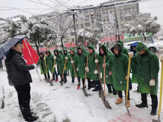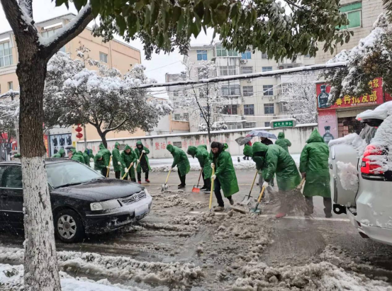 2022年2月7日上午,县水务集团组织党员、干部、职工、志愿者在水木景苑酒店路口-越城路口清理路面积雪。