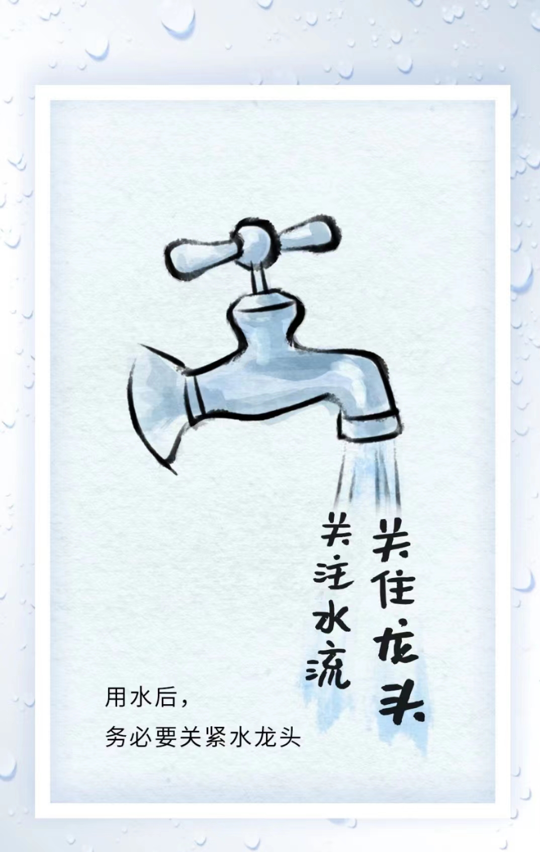 宣传节约用水,树立爱水意识,养成节水习惯,做生命之源的呵护者,做科学节水的实践者,带动身边的家人朋友积极投身到节水行动中。